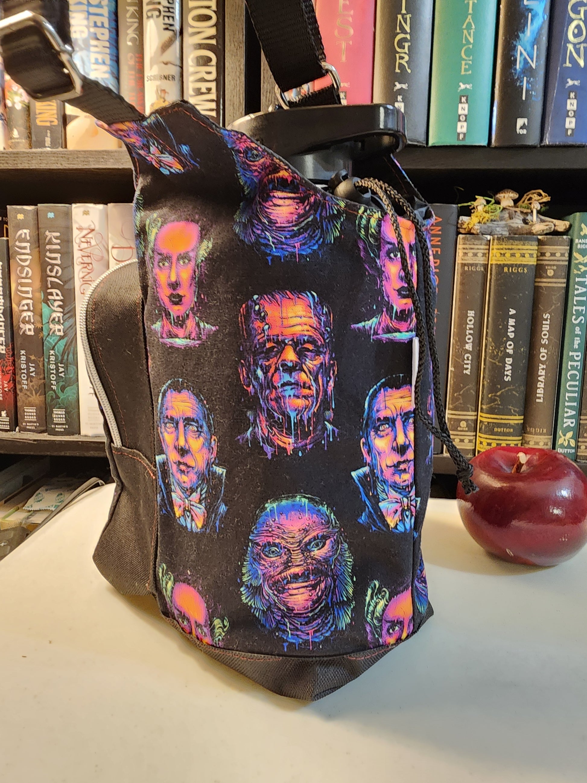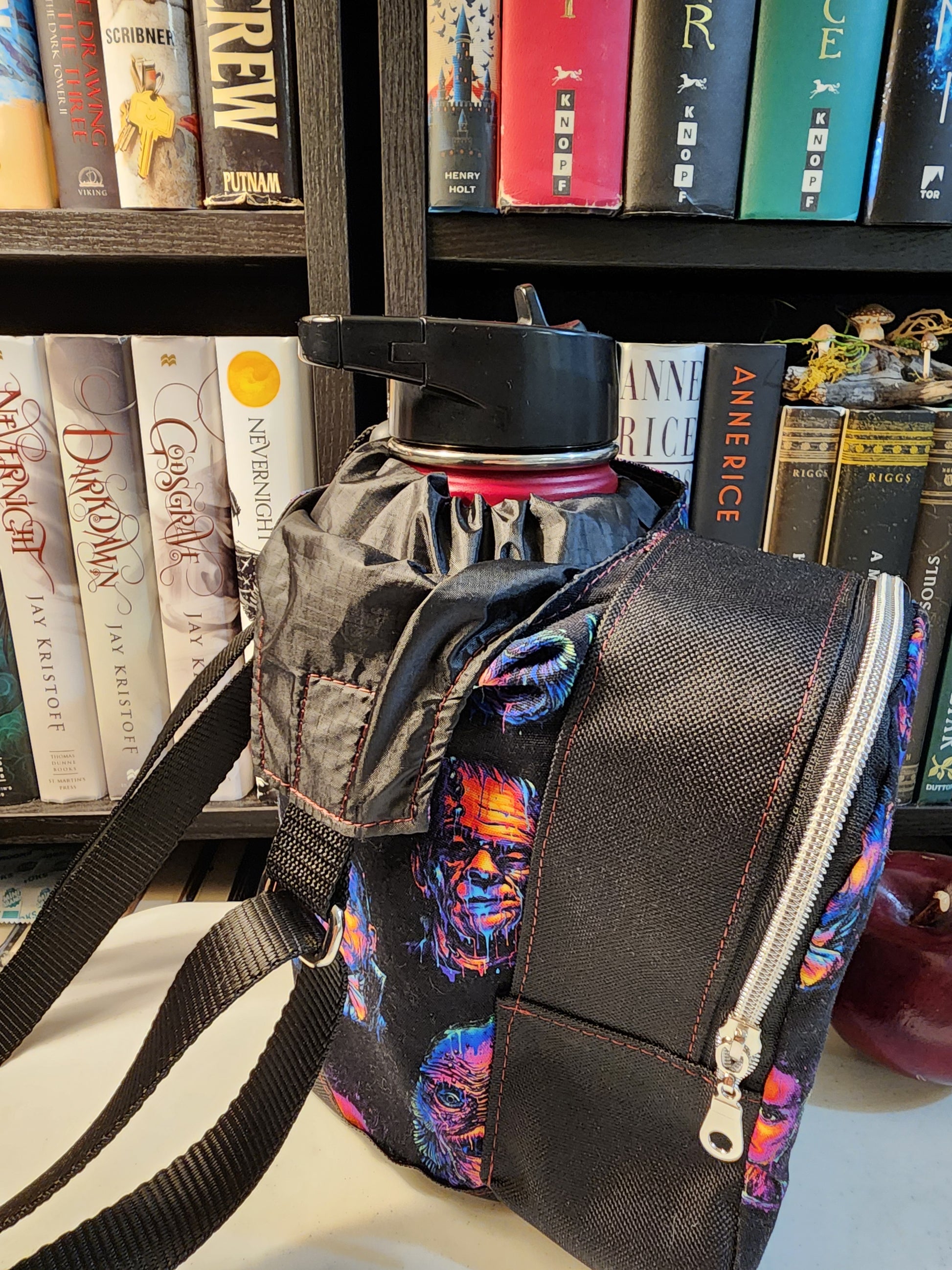 Large bag compartment fits 64 oz flask or 40 oz Stanley with handle.